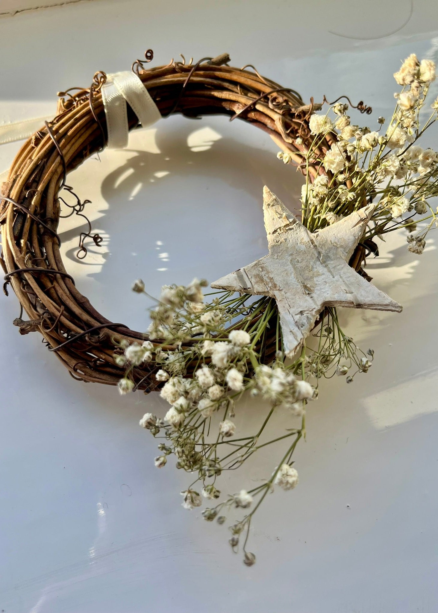 Have a wonderful Wildflower and Berry Christmas with one of our popular Mini Christmas 'Wish upon a Star Wreaths' they combines delicate gypsophilia with a striking silver birch star, finished with an ivory satin ribbon!